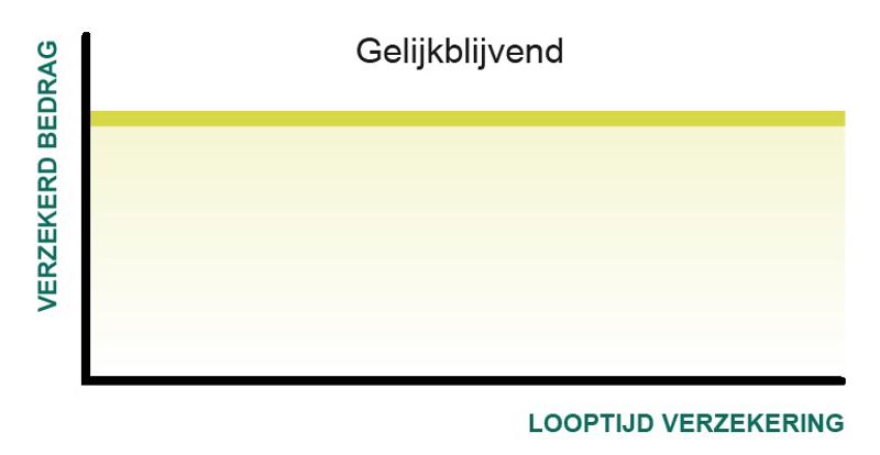 De gelijkblijvende risicoverzekering sluit u vaak af bij leningen waarbij de schuld hetzelfde blijft. Bijvoorbeeld bij een aflossingsvrije hypotheek. De hypotheek wordt niet automatisch minder, dus moet de uitkering van de risicoverzekering ook niet lager worden in de loop der jaren.